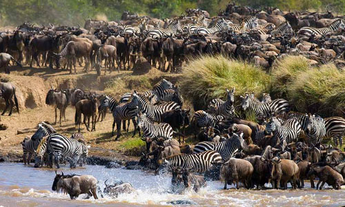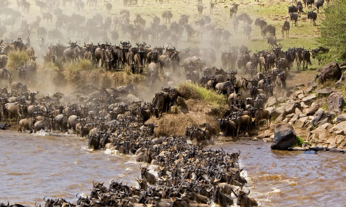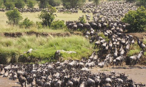 Held as one of the Seven Wonders of the World, witnessing the Great Migration can be a life-changing experience. Have a preview experience in this wildebeest crossing video taken by our guest. We specialize in tailor-made great wildebeest migration safaris. The river crossing is the most-awaited phenomenon where millions of wildebeests move from one place to another in search of greener pastures. We have a vast network of accommodation providers from standard to luxury tented camps and lodges close to the Mara river, the heart of the action. Luxurious tents are available, which are complete with amenities such as, bathroom, spacious beds, food, even a bar. As you follow the Great Migration, you can also encounter herds of zebras and gazelles huddling across the plains and volcanic grasslands of the safari . This experience is packed with action, as migration herds attract predators like big cats, crocodiles, and hyenas. The Great Migration is once in a lifetime experience that lets you witness a wild safari and the real face of nature. It's a global phenomenon that happens only in a certain period of time within a year. Reach out to us if you want to experience the magic of the Great Migration yourself.